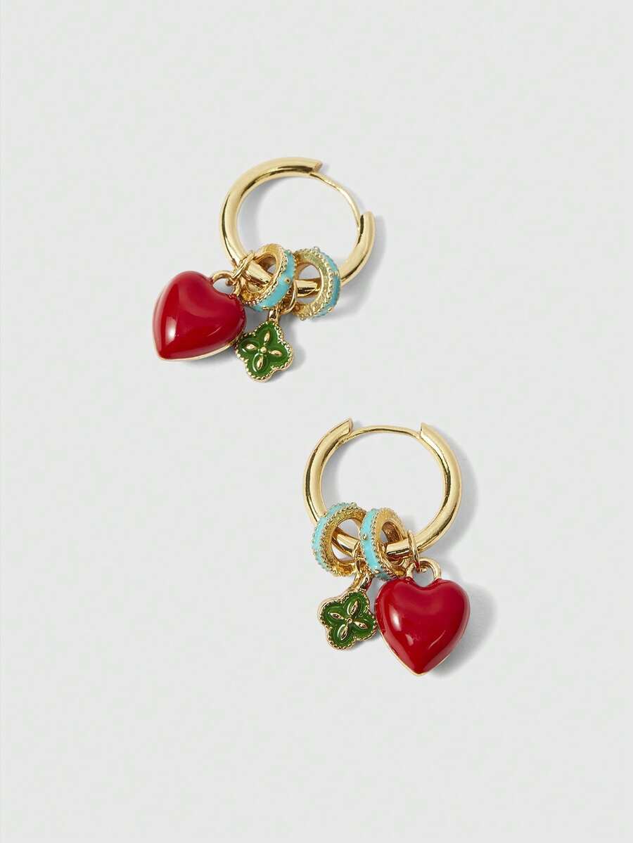 Kawaii 1 Pair Copper Alloy Macaroon Series Colorful Enamel Clover & Geometric Hoop Earrings, Fashionable & Versatile, Women Earrings For Mother's Day & Christmas Gift, DIY Earring Hoops