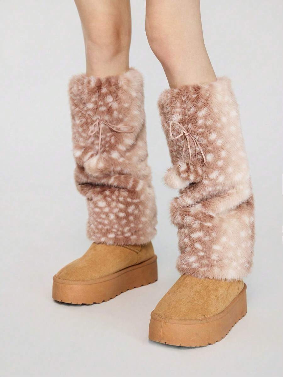 Fairycore 1 Pair Cute Fluffy Deer Design Leg Warmers, Y2K Fuzzy Pom Pom Thick Oversized Leg Warmers, Fashionable Slim Fit, Suitable For Everyday, Autumn/Winter, Holidays & Parties