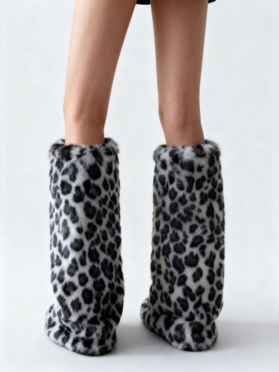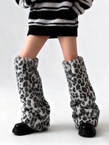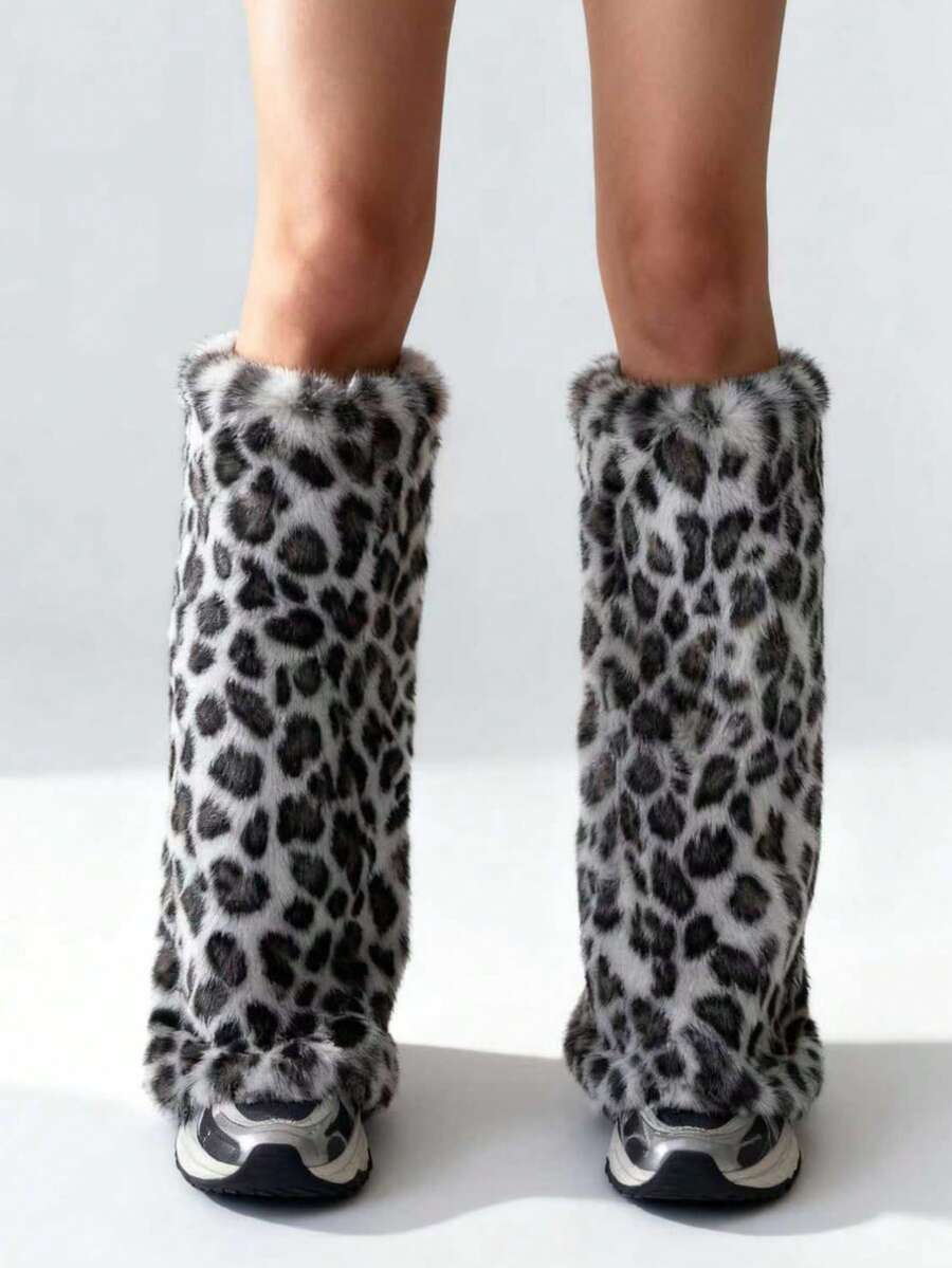 Kawaii 1 Pair Cute Fluffy Deer Design Leg Warmers, Y2K Fuzzy Pom Pom Thick Oversized Leg Warmers, Fashionable Slim Fit, Suitable For Everyday, Autumn/Winter, Holidays & Parties