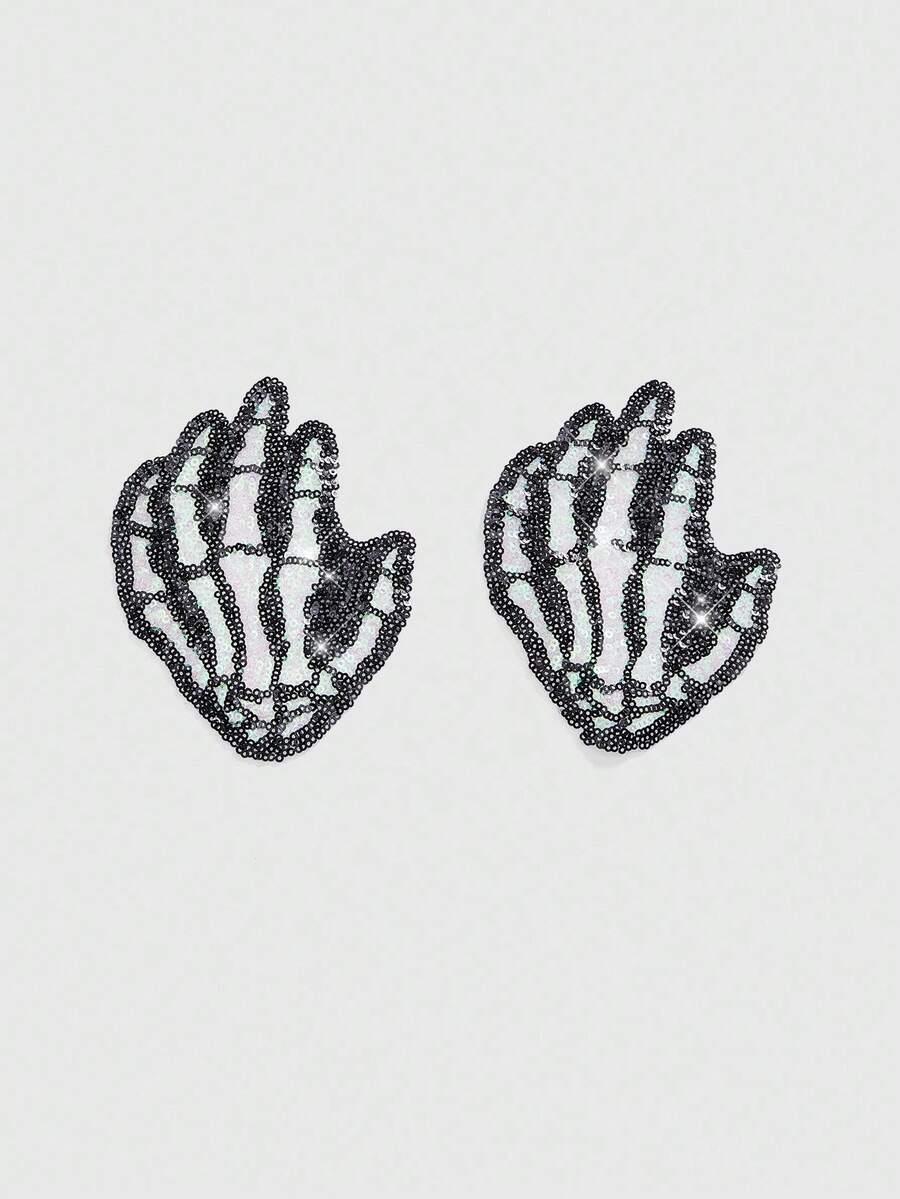 1 Pair Gothic Style Sequin Skeleton Palm Nipple Covers