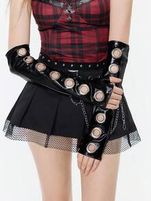 Goth 1 Pair Of Punk Style Long Gloves, Dark Solid Color Arm Cover, Metal Circle Gloves, Suitable For Daily Proms And Parties