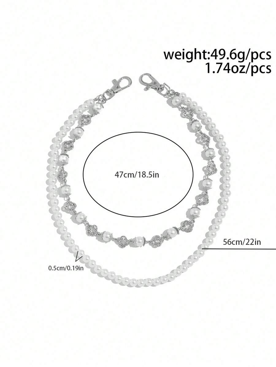 Fairycore 1 Pc Fashionable Elegant Minimalist Floral Rhinestone & Faux Pearl Decor Waist Chain, Women's Charming Personalized Belt Pant Chain For Casual, Party, Music Festival