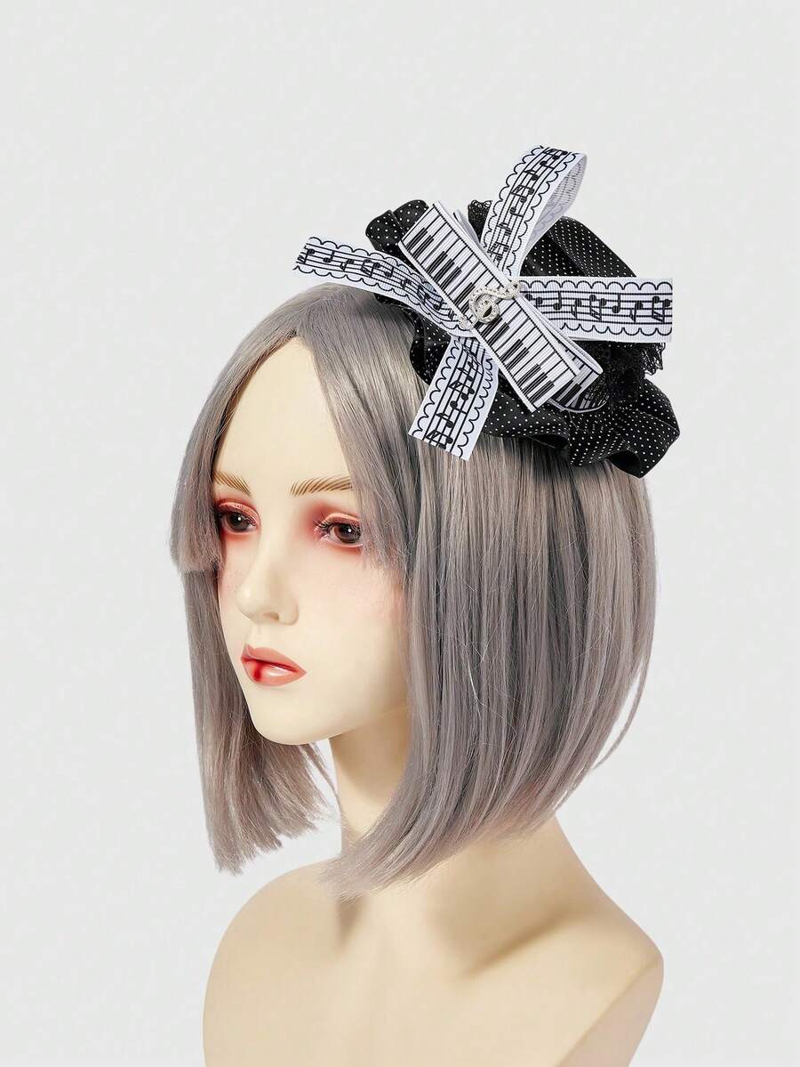 1 Piano Note Pattern Bow Hairpin, Cute Sweet Style Black Polka Dot Top Hat Duckbill Clip, Handmade Lolita Tea Party Hair Accessories Hairpin