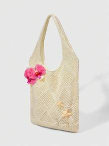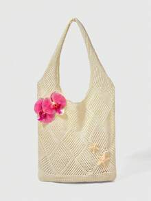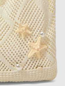 Fairycore 1 Set Beige Shell & Starfish Woven Beach Tote Bag With Accessories, Personalized Beach Vacation Style Women Handbag (Includes 1 Bag And 1 Set Of Accessories)