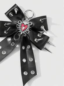 Grunge Punk 1 Y2k Punk Personalized Retro Sweet Cool Dark Wind Goth Black Leather Double Row Metal Air Eye Rivets Ancient Silver Dripping Oil Peach Heart DIY Keychain Accessories Bag Pendant Pendant, Suitable For Girls And Ladies Daily Wear, Holiday Gifts