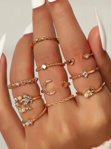 10pcs Rhinestone Decor Ring