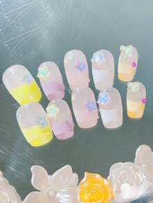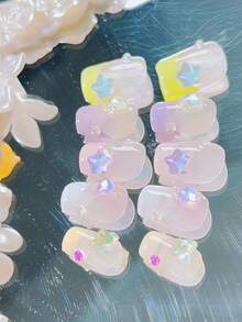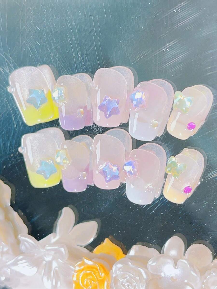 Kawaii 10pcs Short Coffin Star Decor Fake Nail Kit