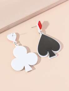1pair Creative Playing Card Decor Mismatched Drop Earrings For Women For Daily Decoration