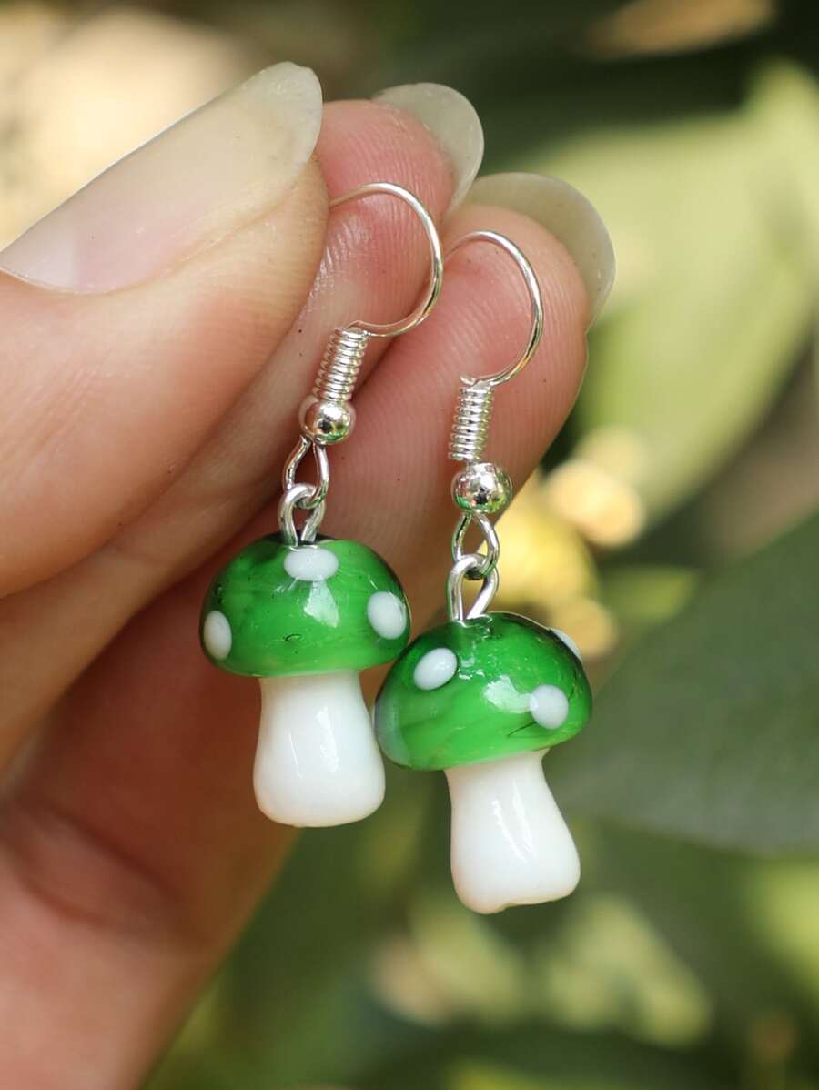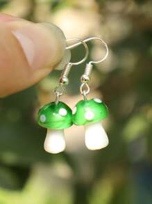 1pair Cute Polyresin Mushroom Drop Earrings For Women For Daily Life