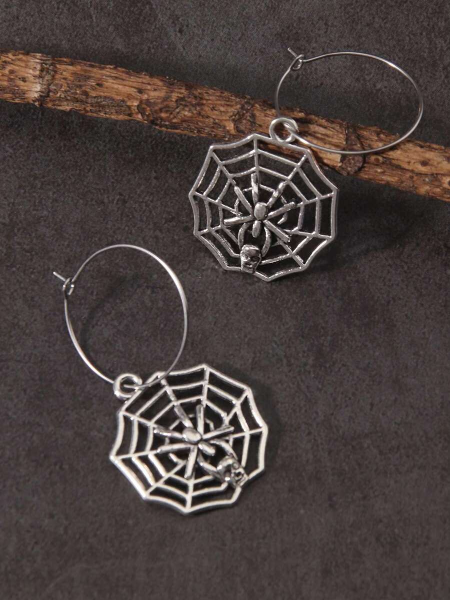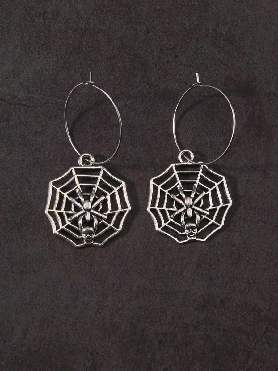 Goth 1pair Funky Stainless Steel Spider Web Decor Drop Earrings For Women For Daily Decoration