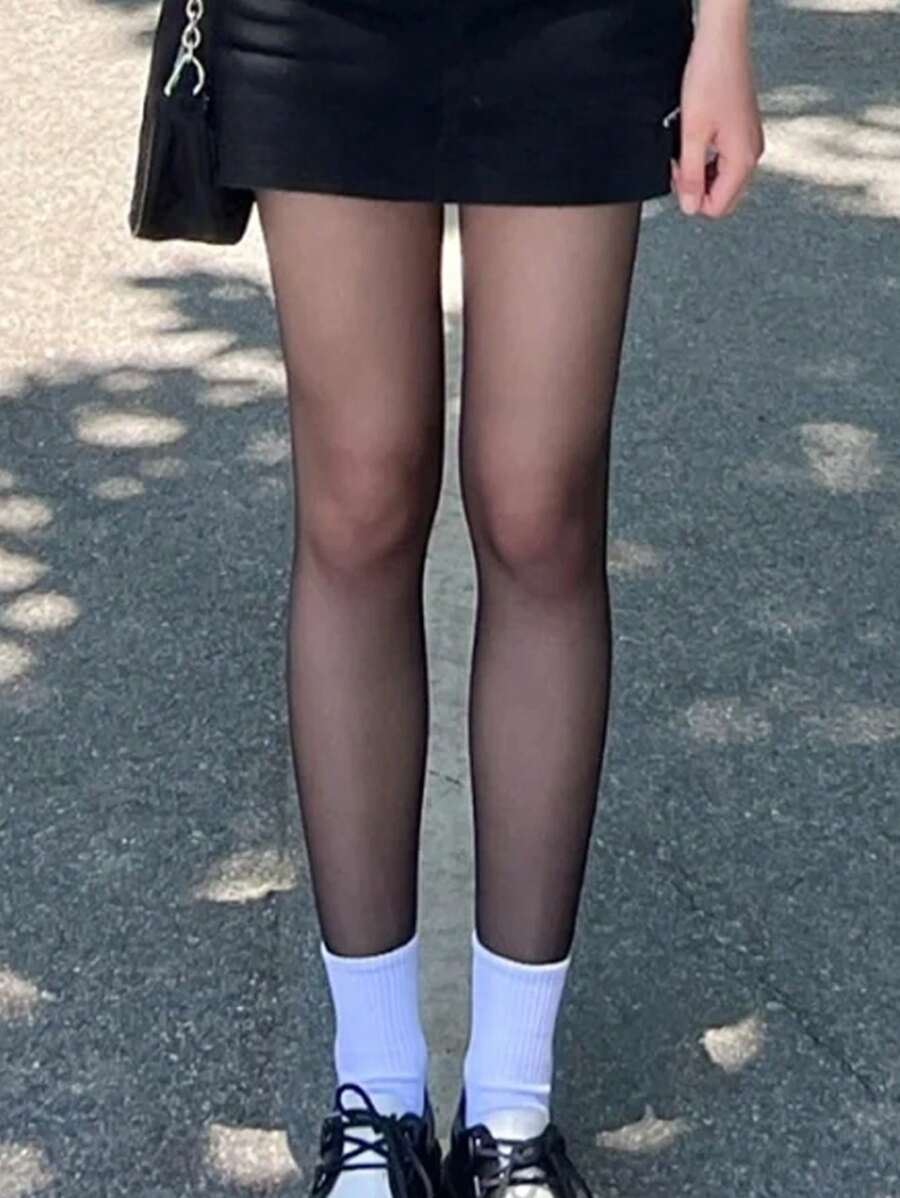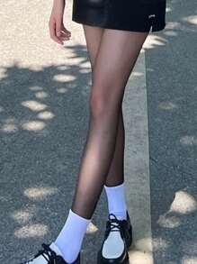 1pair Women Solid Sheer Tights & 1pair Women White Crew Socks