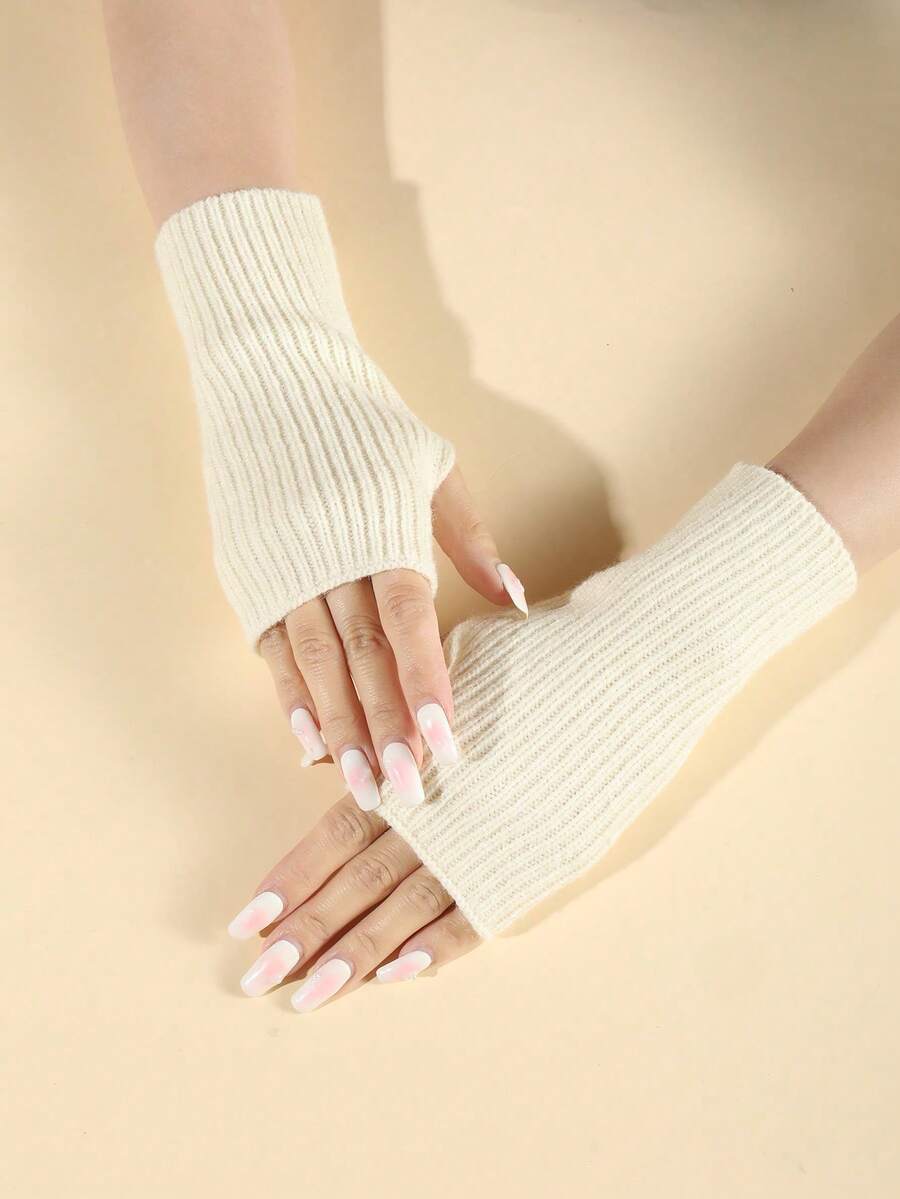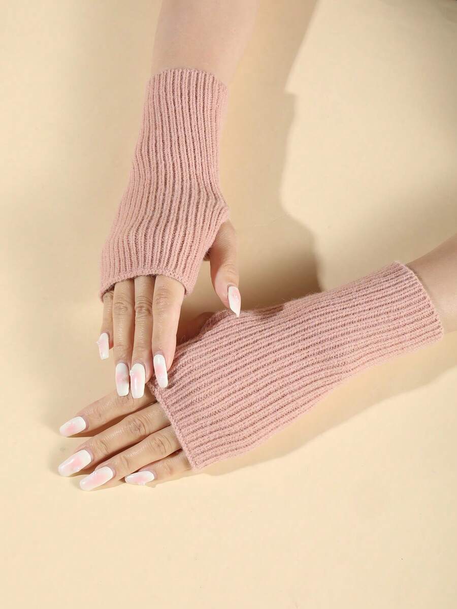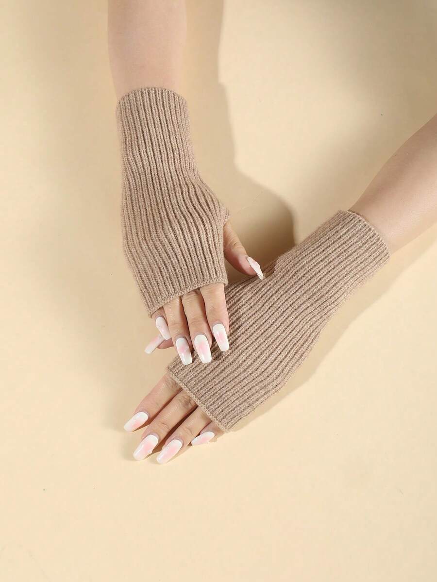 1pair Women's Thick Warm Knitted Gloves Fingerless Mittens Wrist Warmer Elegant For Autumn And Winter Outdoor Activities