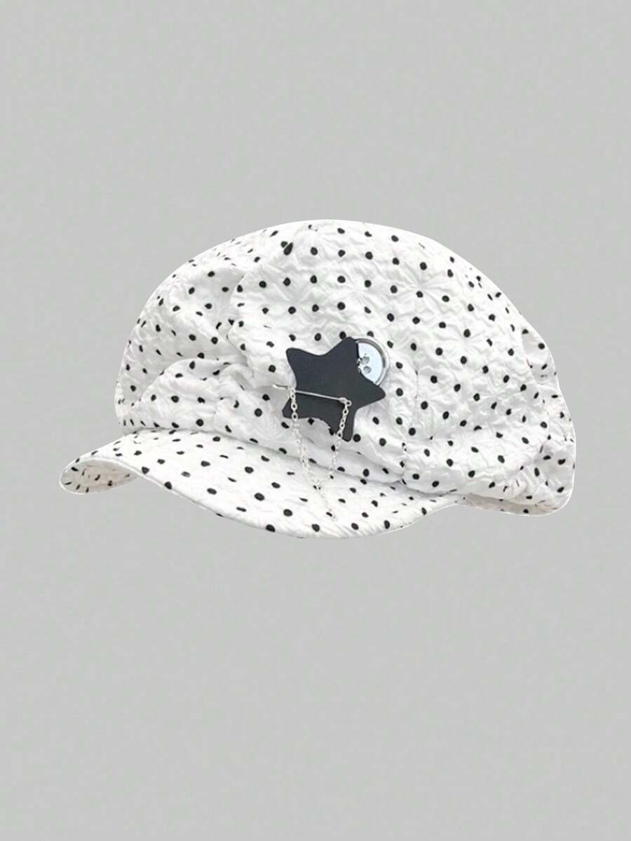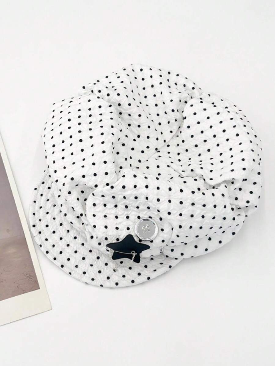 Kawaii 1pc Black & White Polka Dot Octagonal Hat, Vintage Style Beret Cap, Painter Hat For Women, Spring/Summer (Polka Dot Pattern Random)