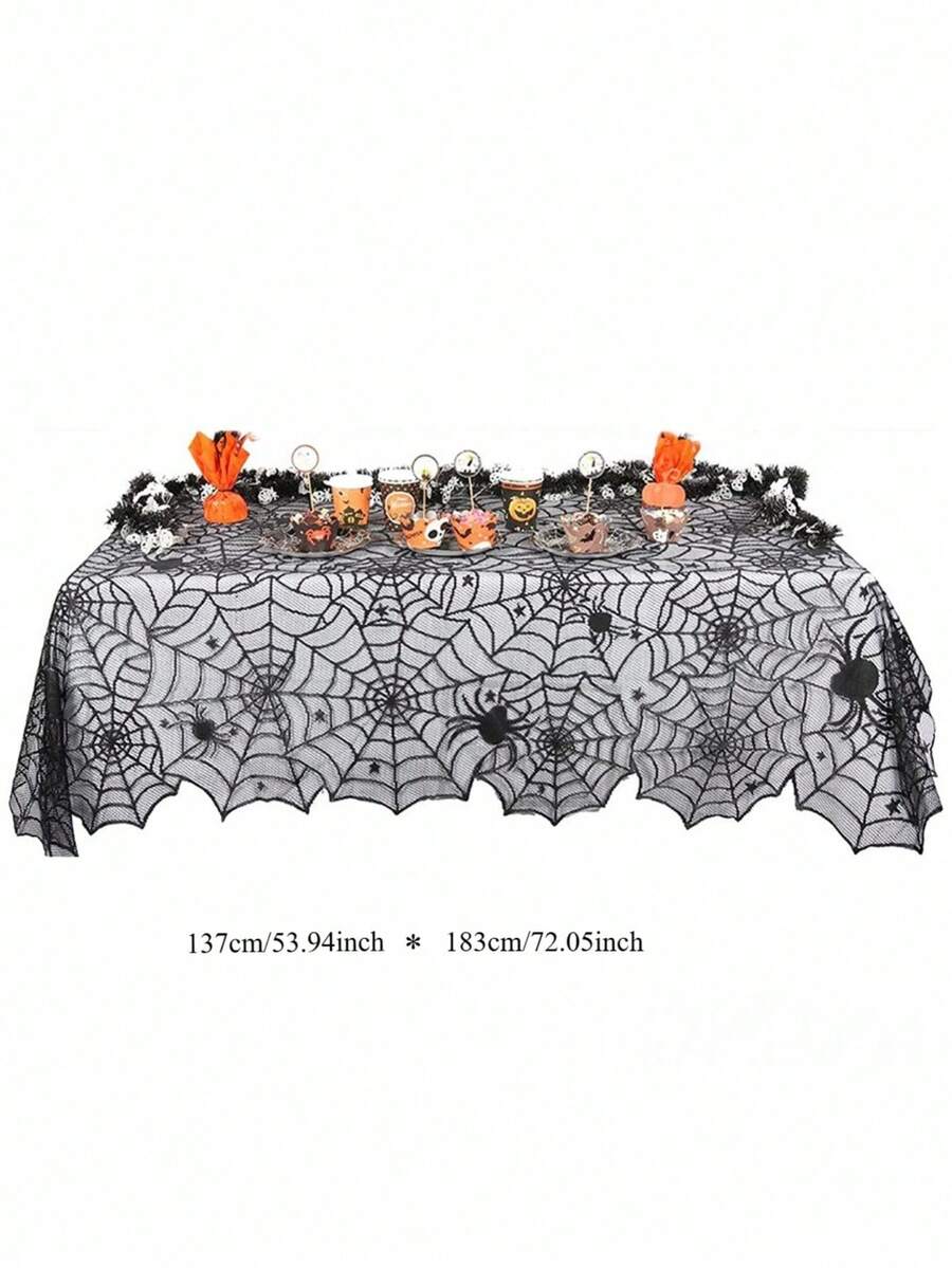 Goth 1pc Black Lace Tablecloth(135*183), Spider Web Lace Tablecloth, Party Decoration, Photo Props, Background,Halloween Black Lace Spider Web Square Tablecloth - Dining Table Cover / Decorative Cover For Ghost Festival