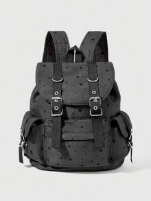 Anime 1pc Black Y2K Minimalist Stylish Star Retro Classic Polka Dot Print Flap Multi-Pocket Fashion Backpack, Suitable For School, Travel, Can Fit Laptop
