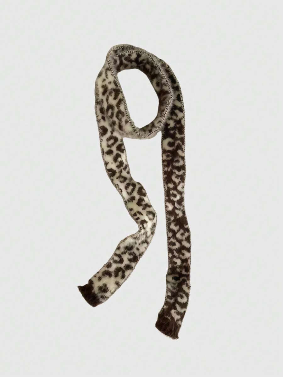 Anime 1pc Brown Y2K Babe Punk Leopard Animal Print Kawaii Sweet Retro Patchwork Contrast Color Fashion Simple Women Scarf, Suitable For Street, Campus, Commute, Etc.