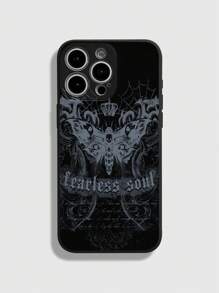 1pc Butterfly Pattern Printed TPU Frosted Anti-Drop Black Phone Case Compatible With IPhone, Gothic Style