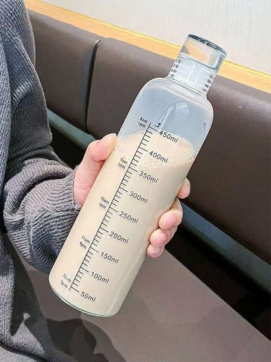 1pc Clear Water Bottle With Random Sticker, 500ml Plastic Water Cup With Scale For Home Office School