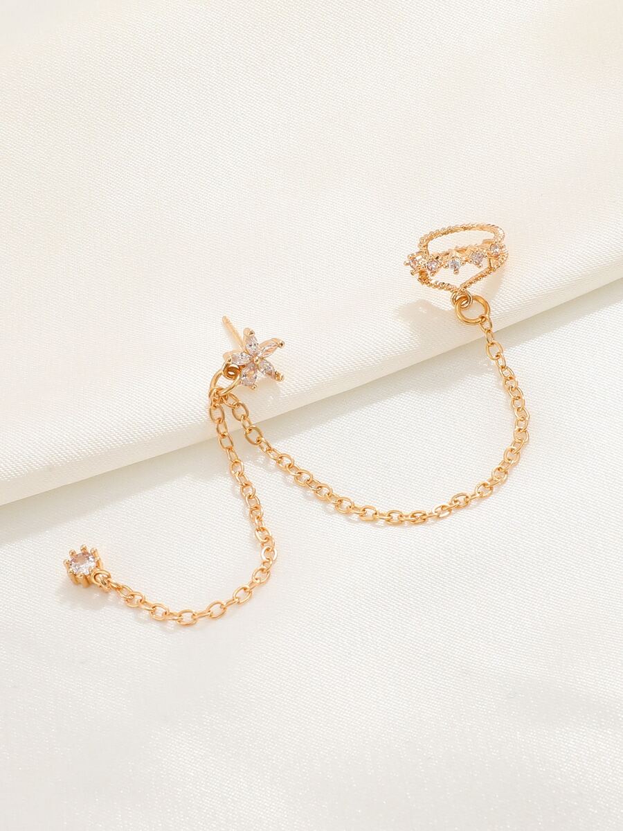 1pc Cubic Zirconia Flower Decor Earring