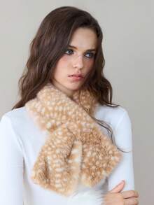 Fairycore 1pc Cute Deer Plush Shawl, Sweet Animal Pattern Scarf, Warm & Fashionable Neck Wrap Accessory For Autumn/Winter