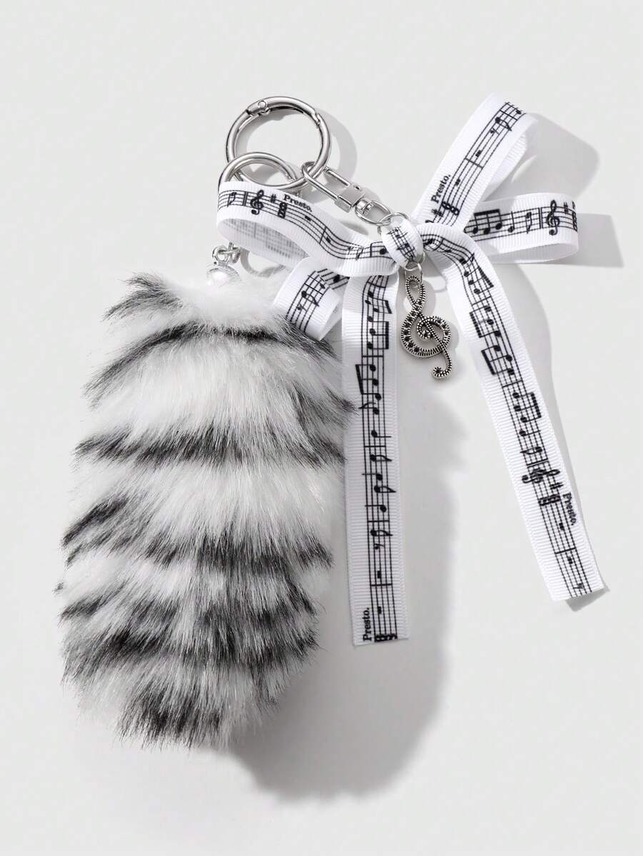 Anime 1pc Exquisite Retro Stylish High-Quality Acrylic Bowknot, Heart-Shaped, Faux Fur Leopard Print Animal Tail Keychain & Keyring, Fashionable Accessory Gift For Women