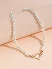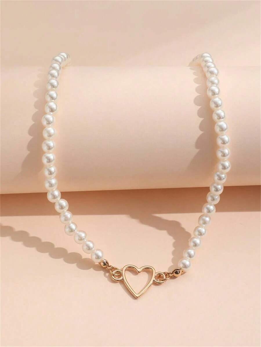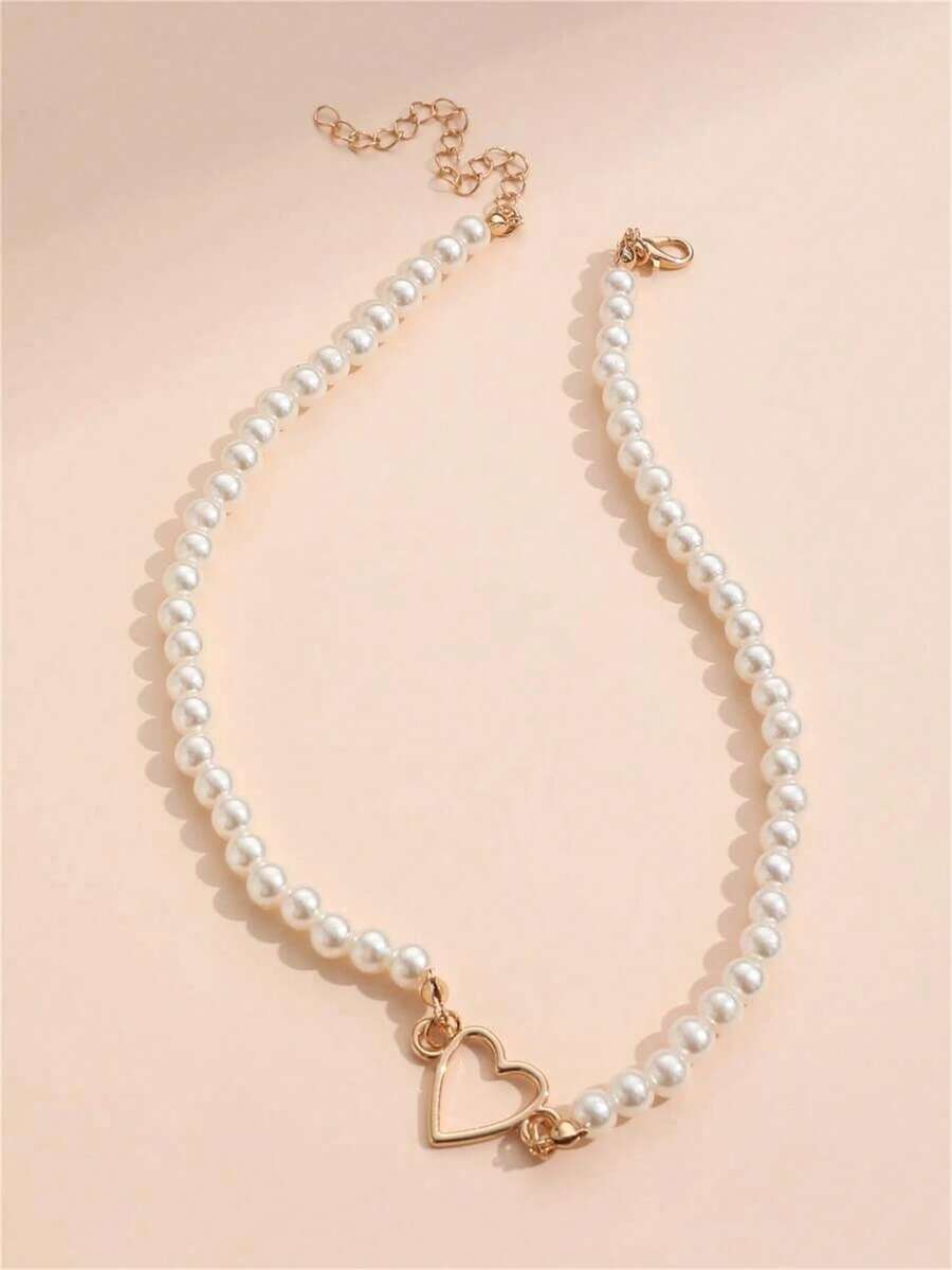 1pc Fashion Heart Decor Faux Pearl Beaded Necklace For Women For Dating Gift