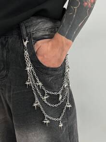 Fairycore 1pc Fashionable Punk Star Waist Chain, Men's Hip Hop Personalized Multi-Layer Iron Alloy Body Chain, For Pants Decoration, Suitable For Daily Wear And Parties