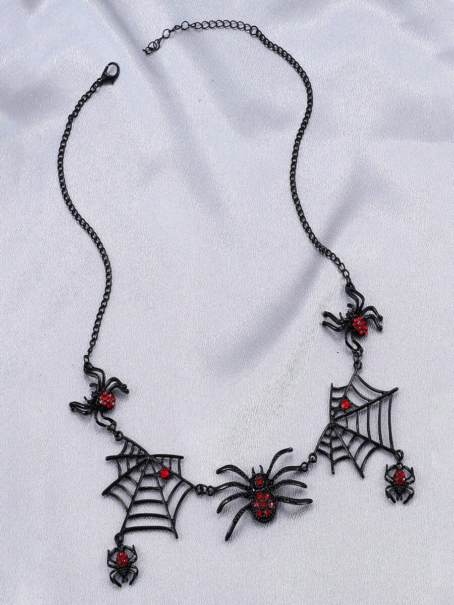 Goth 1pc Funky Zinc Alloy Spider & Spider Web Decor Necklace For Women For Daily Decoration
