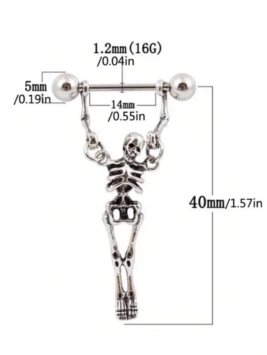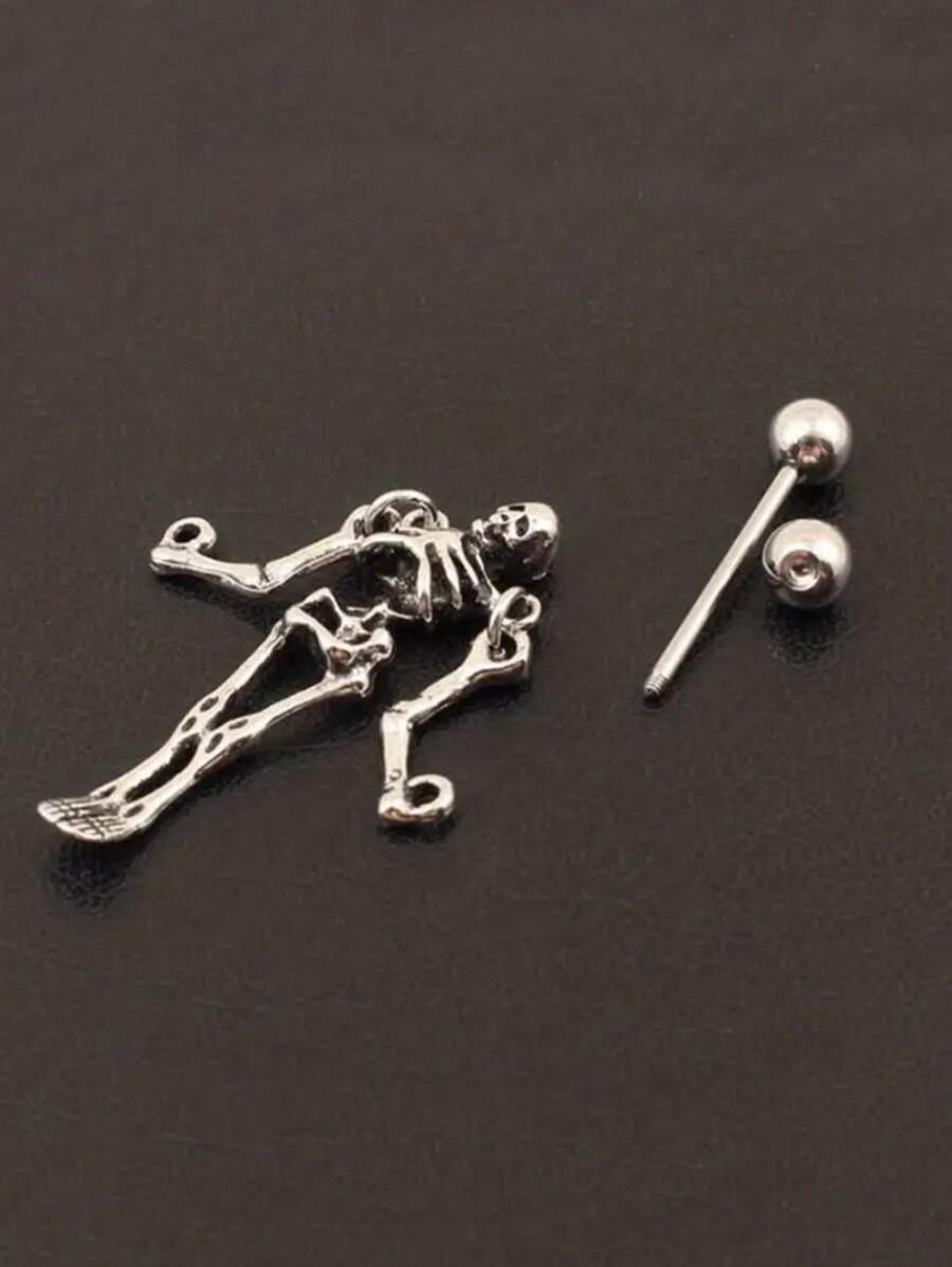 1pc Gothic Skull Shaped Stainless Steel Piercing Earring, Halloween