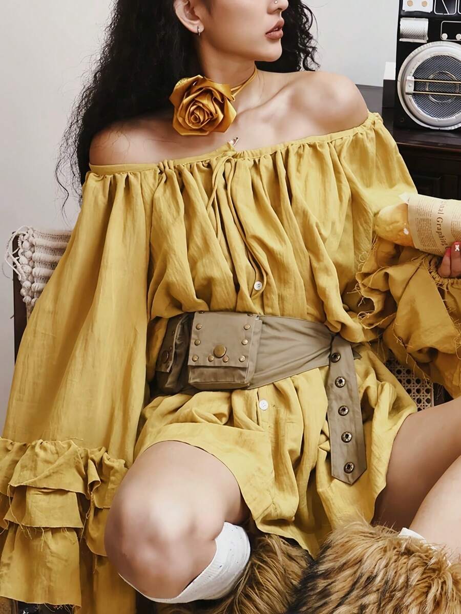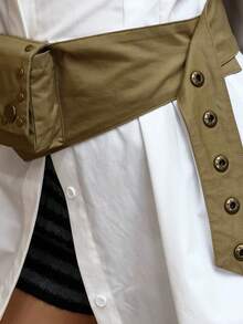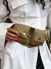 Goth 1pc Khaki Y2K Babe Vintage Rivet Dual Pocket Waist Bag Decor Waist Belt, Fashion Versatile Casual Wild Style For Women, Suitable For Party, Date, Travel, Halloween, Etc.