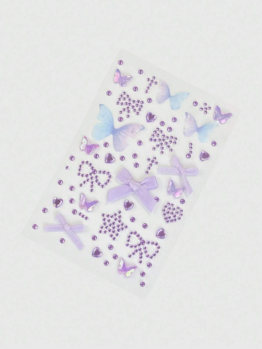 Kawaii 1pc Lace Bow, Heart, Star, Cross, Diamond Glitter & Gem Face Stickers