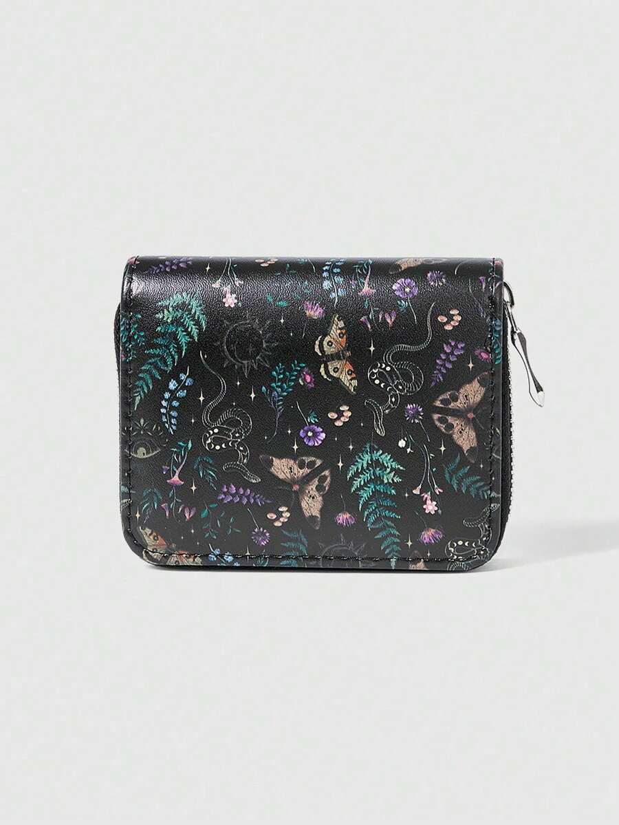 Fairycore 1pc Moon Flower Snake Zipper Wallet, Minimalist Design, Suitable For Both Men And Women.