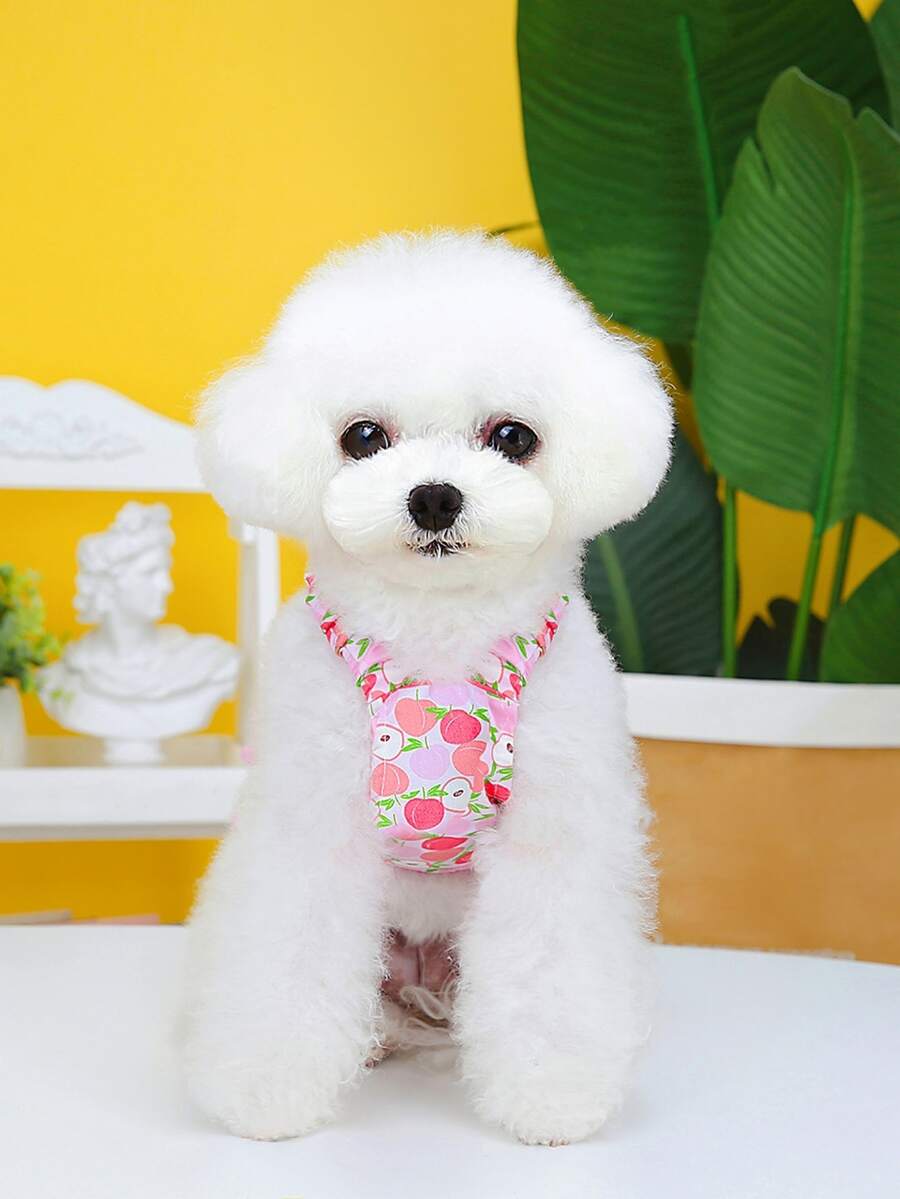 1pc Peach Print Pet Leash & 1pc Dress Design Pet Harness