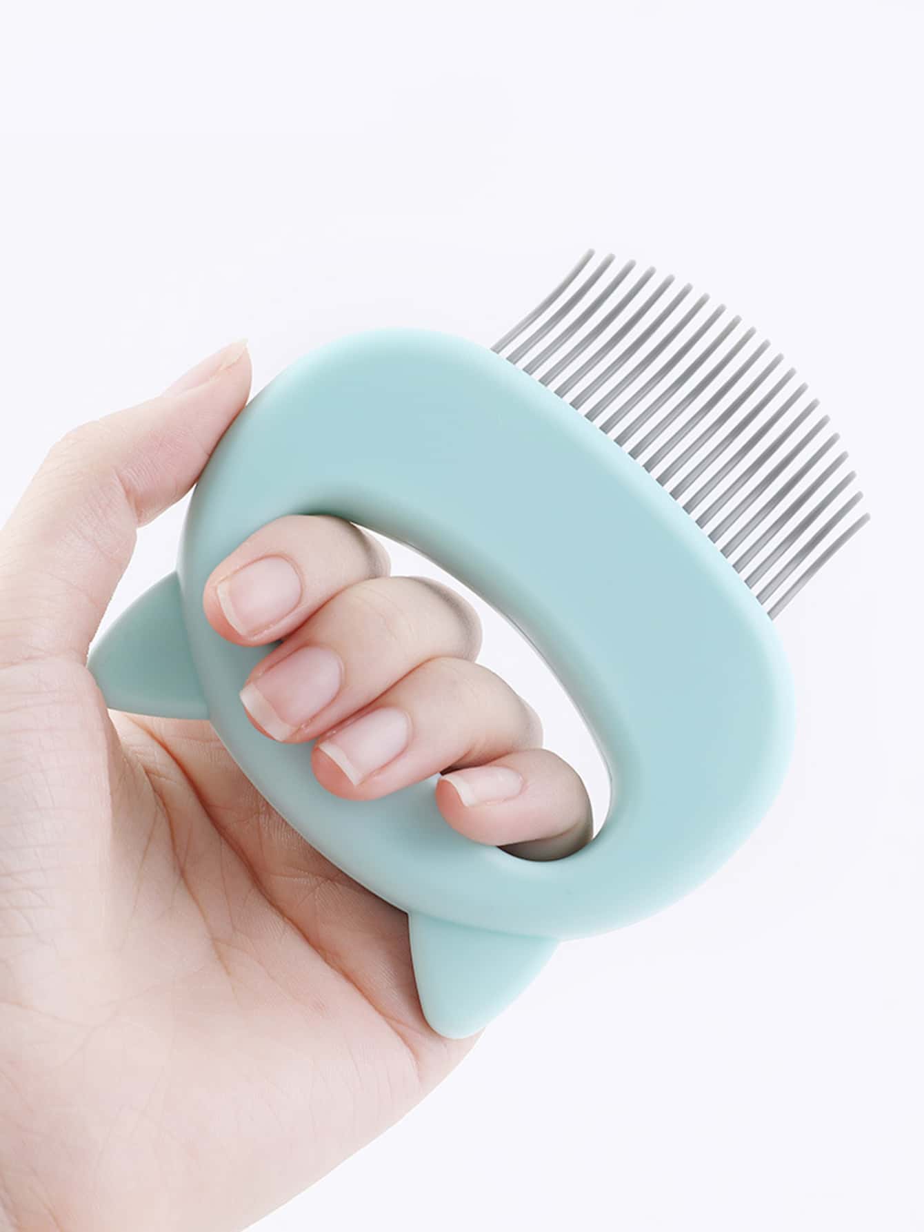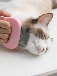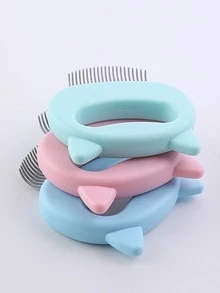 1pc Random Color Pet Hair Comb, Cat Ear Shell Comb, Pet Hair Removal Massaging Steel Needle Brush, Cat Deshedding Grooming Comb