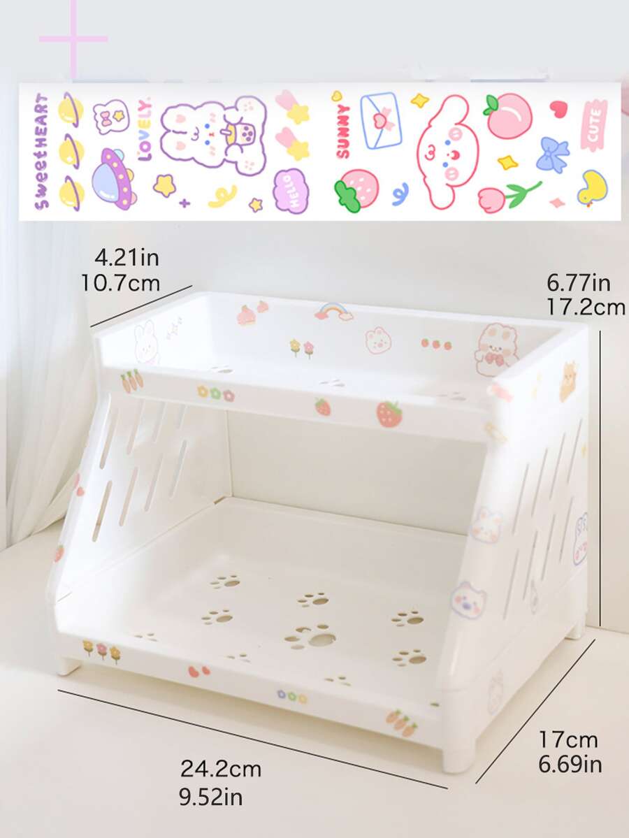 1pc Random Double Layer Storage Rack With Sticker, Cartoon Storage Rack For Desk
