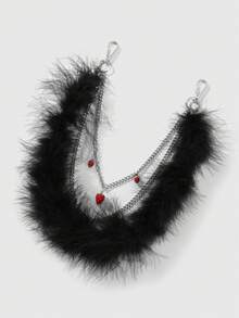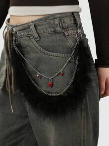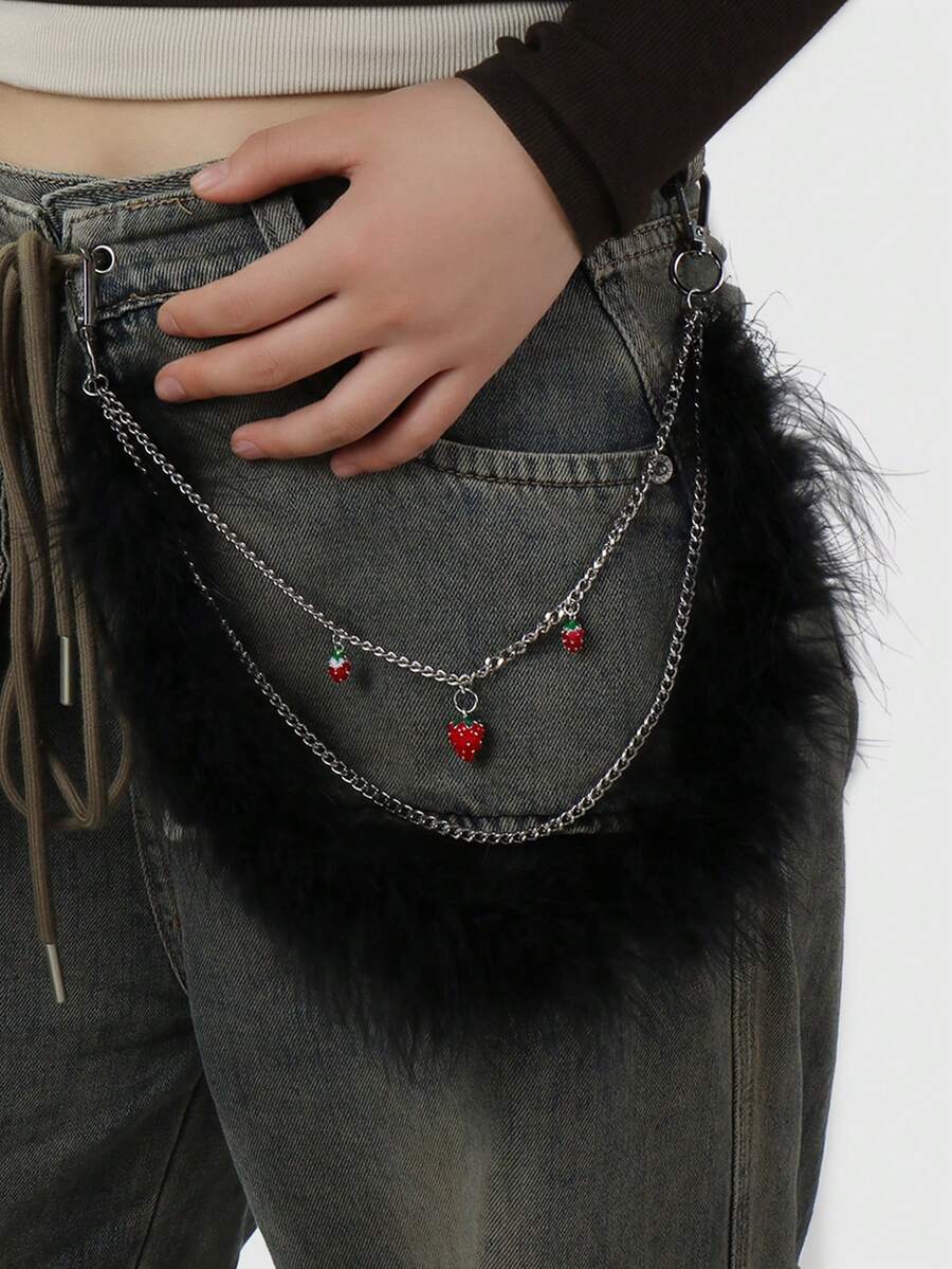 Goth 1pc Retro Y2K Gothic Style Black Furry Silver Hollow Chain Faux Strawberry Pendant Pants Chain Decor, For Women, Suitable For Daily Wear, Holiday Gift