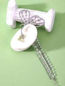 1pc Rhinestone Butterfly & Chain Tassel Decor Ear Wrap