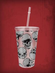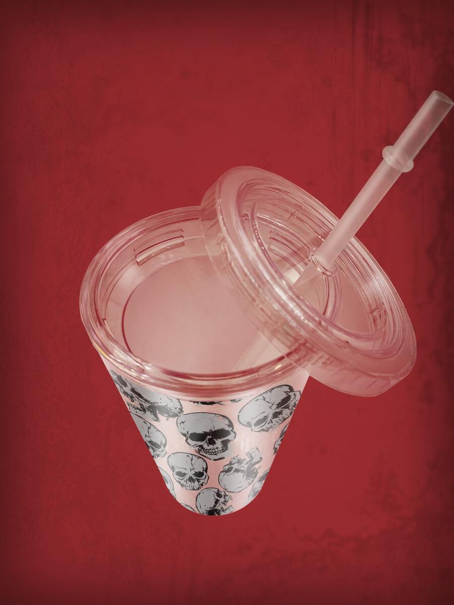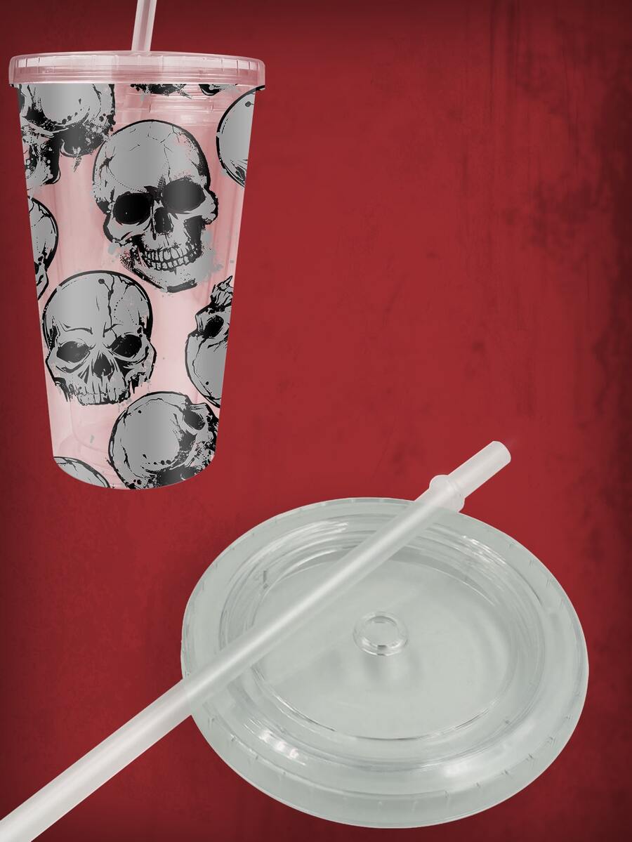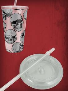 1pc Skeleton Print Tumbler, Modern PS Skull Print Bottle With Lid For School, Office