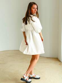 1pc Solid Puff Sleeve Babydoll Dress