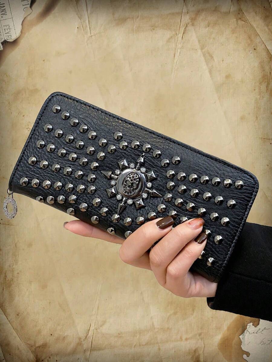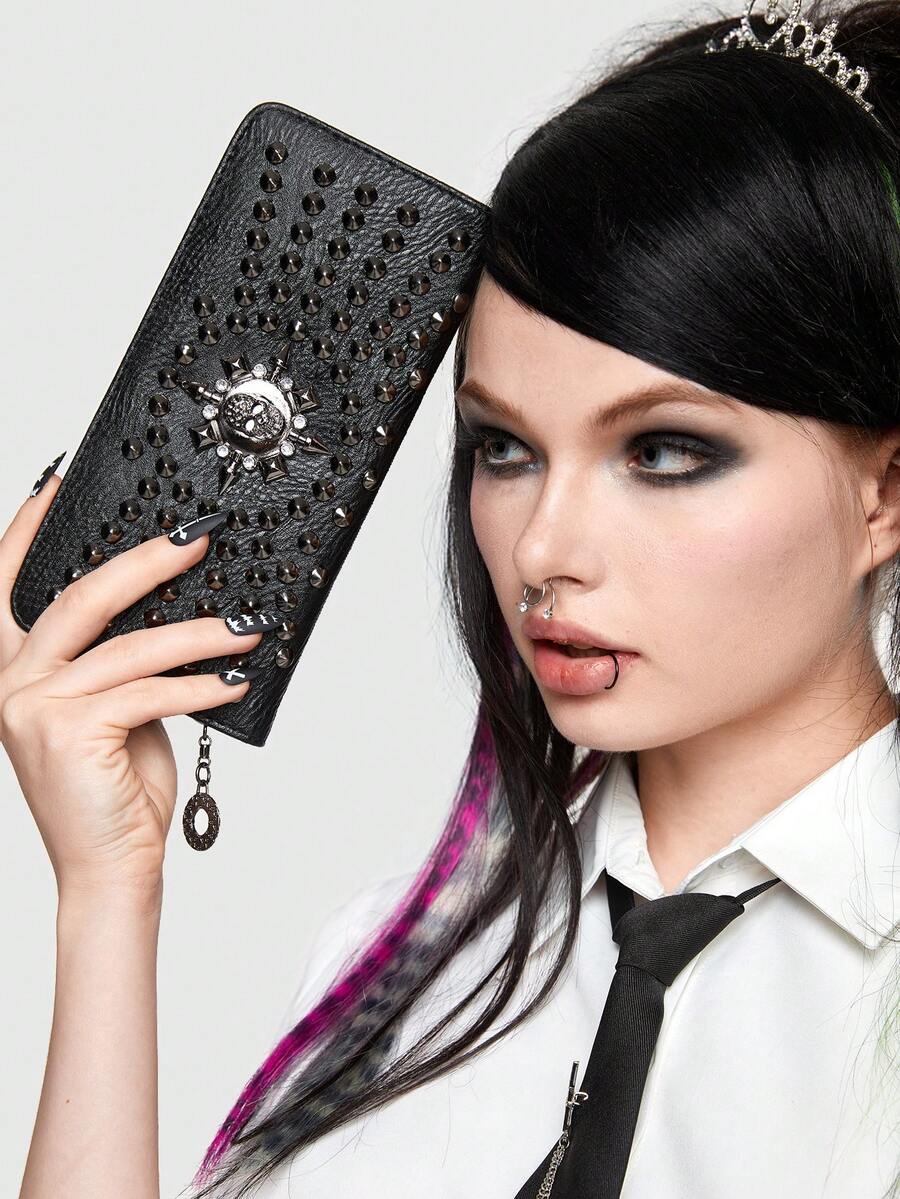 Goth 1pc Studded Decorative Long Wallet