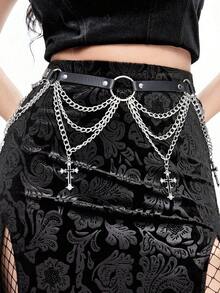 Goth 1pc Women's Black Hollow Star & Circle Decor Chain Belt, Punk Style Decoration For Daily Dress