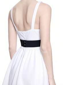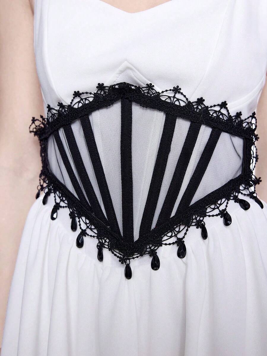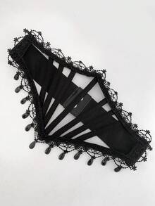 Grunge Punk 1pc Women's Black Mesh Lace Rhinestone Pendant Tie-Up Decor Elastic Waist Belt Corset Dress Accessory, Goth Style For Halloween Costume