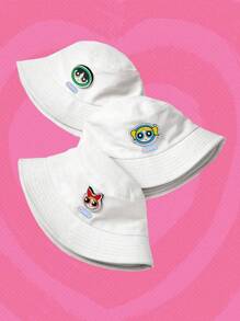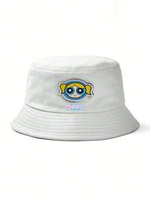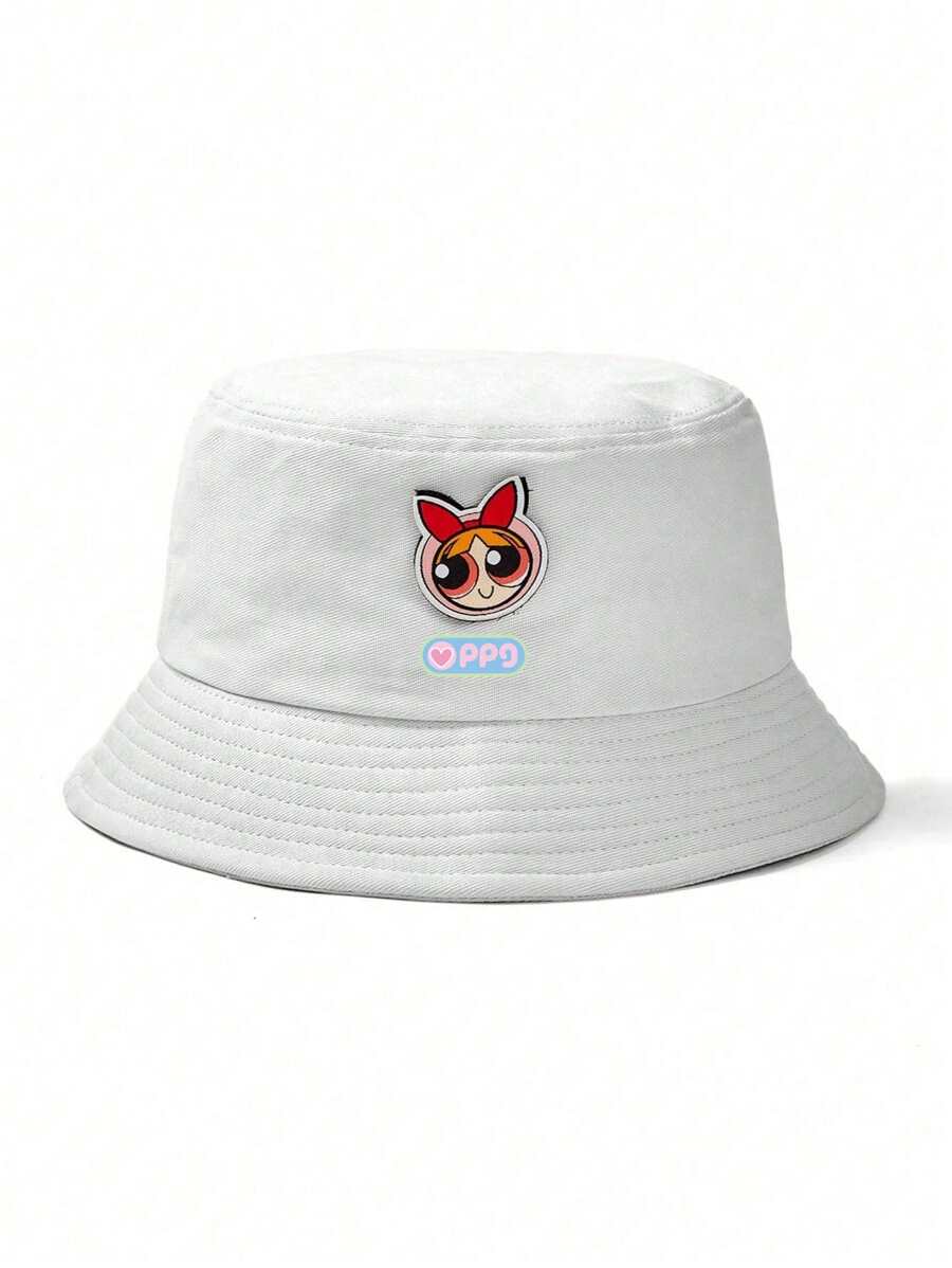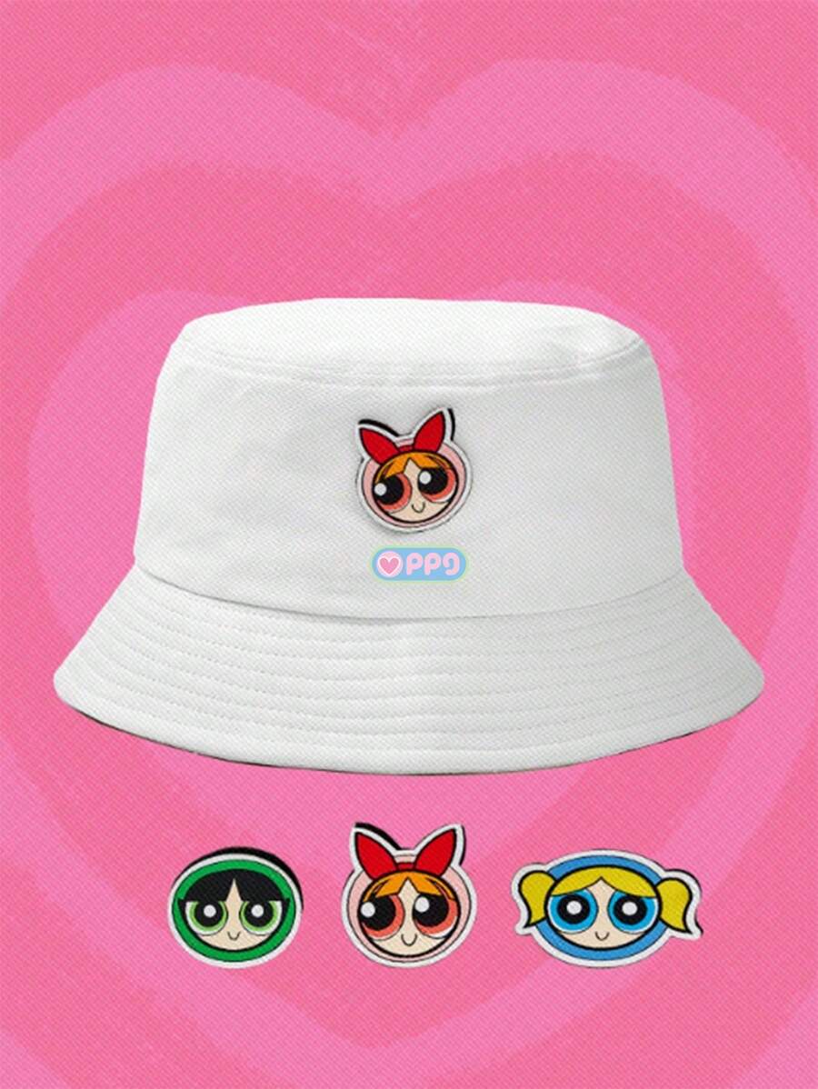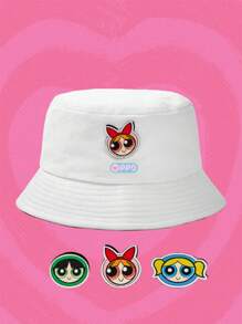 The Powerpuff Girls | ROMWE 1pc Women Cartoon Patched Bucket Hat & 3pcs Badges