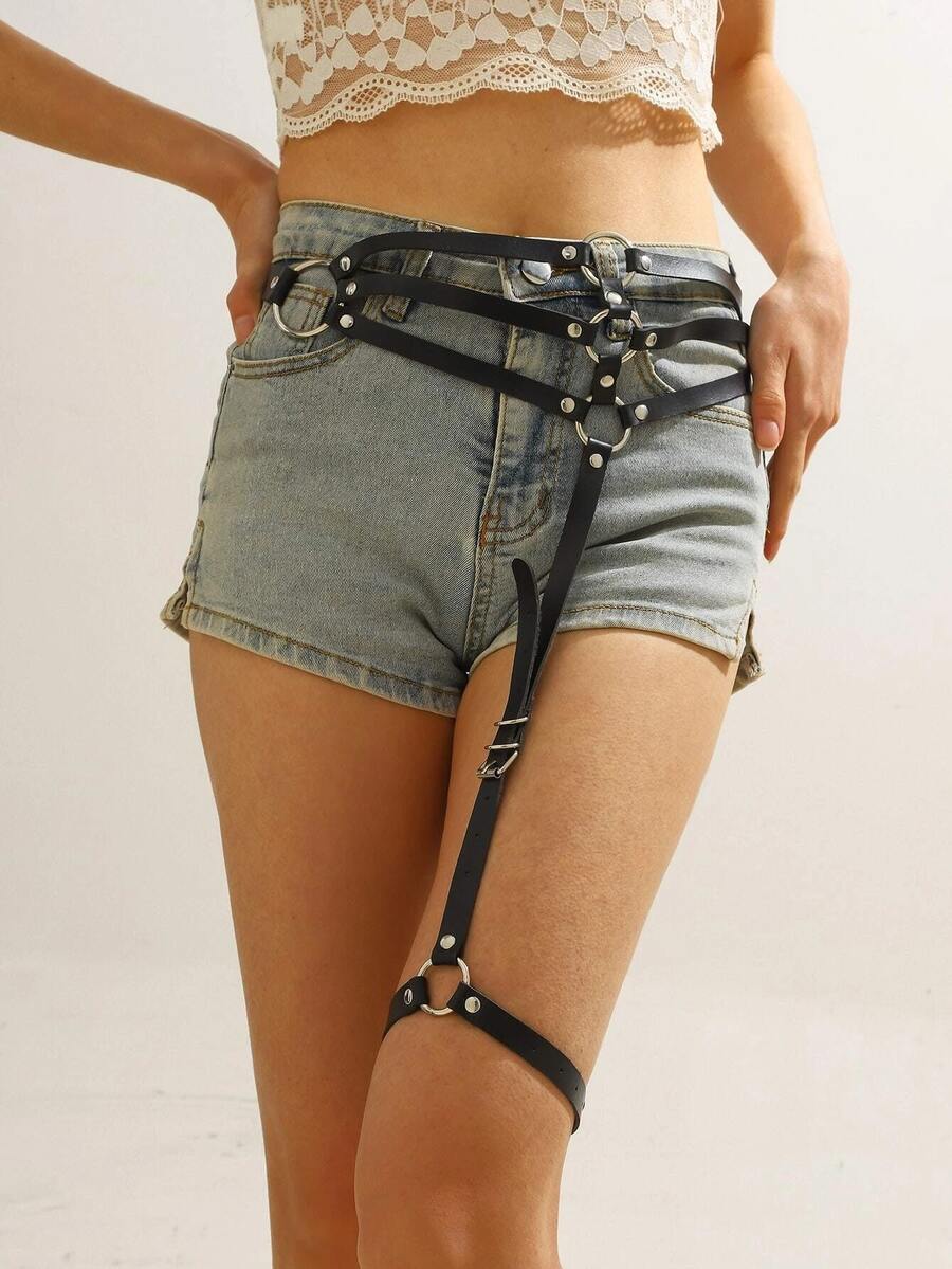 1pc Women Ring Lined Adjustable Fashion Harness Garter Belt