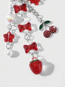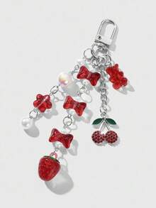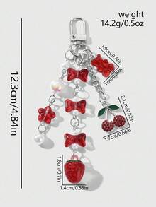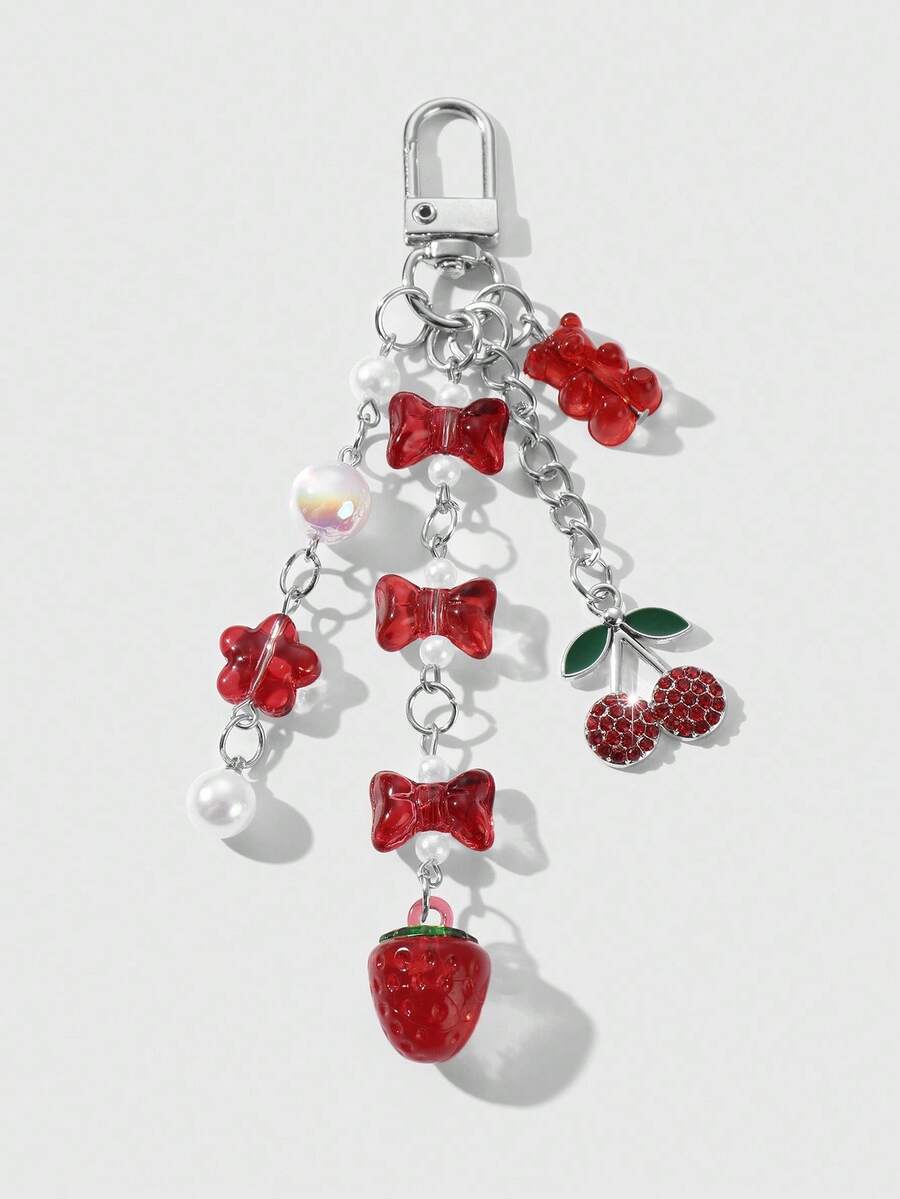 Kawaii 1pc Y2K Elegant & Sweet Versatile Minimalist High-End Silver Chain Colorful Beaded Resin Bow, Star, Bear, Strawberry, Cherry Rhinestone DIY Keychain Bag Charm, Suitable For Women, Daily Wear, Holiday Gift
