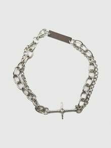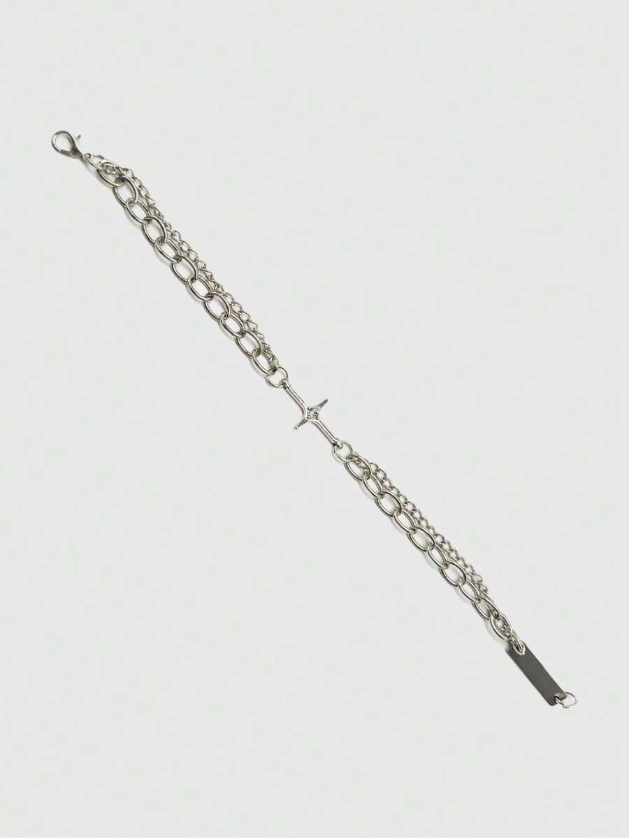 Goth 1pc Y2K Style High-Quality Minimalist Rhinestone Cross Element Double Layer Chain Bracelet, Fashion Handband