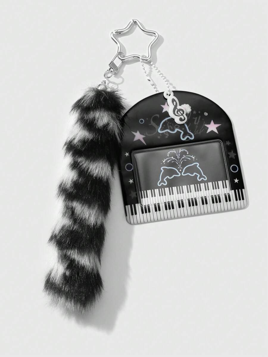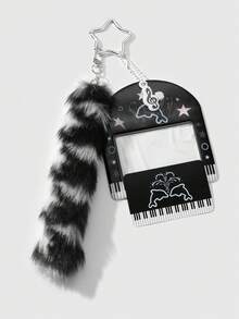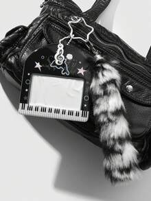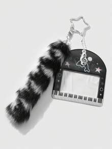Grunge Punk 1pc Y2K Vintage Sweet Gothic Style Grey Plush Animal Leopard Print Fake Tail, Leather Heart Bowknot, CCB Star Net Yarn Lace Card Holder, DIY Keychain Bag Pendant, Suitable For Office Workers, Students And Daily Wear, Holiday Gift, Halloween