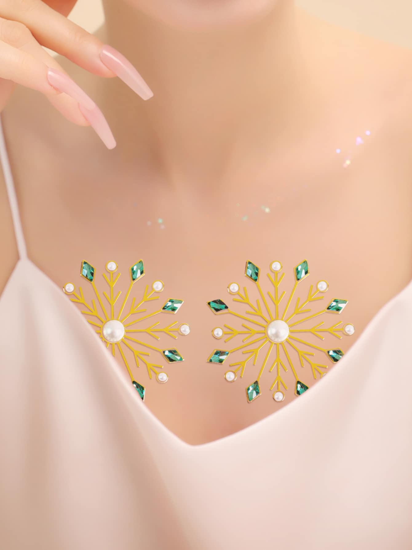 1sheet Rhinestone Decor Snowflake Design Chest Tattoo Sticker