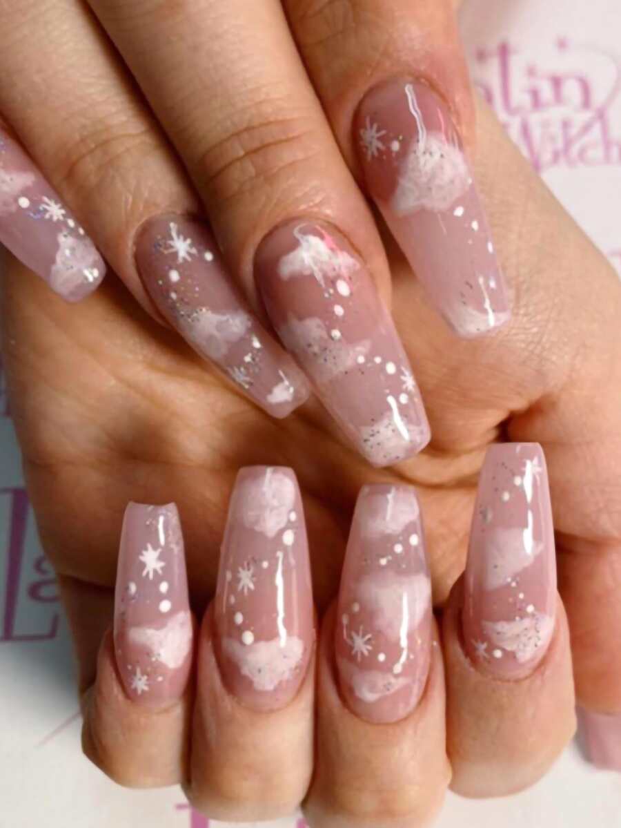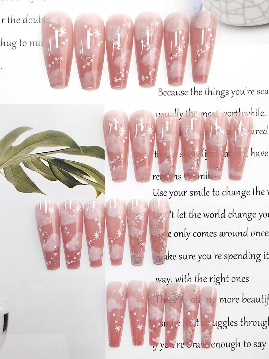 24pcs Cloud Pattern Fake Nail