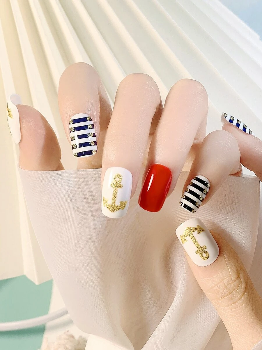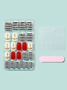 24pcs Striped Fake Nail & 1sheet Tape & 1pc Nail File